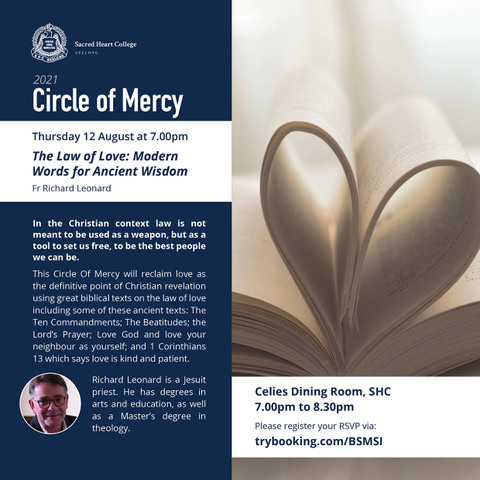You are invited to our next Circle of Mercy, to be held Thursday 12 August at 7.00pm. This will most likely be offered via zoom, due to Fr Richard Leonard being a resident of Sydney. To be sent a zoom link for this you must register via Try Booking by clicking here.